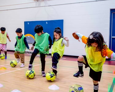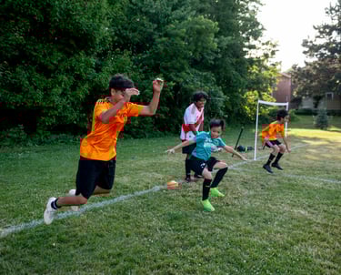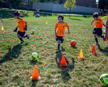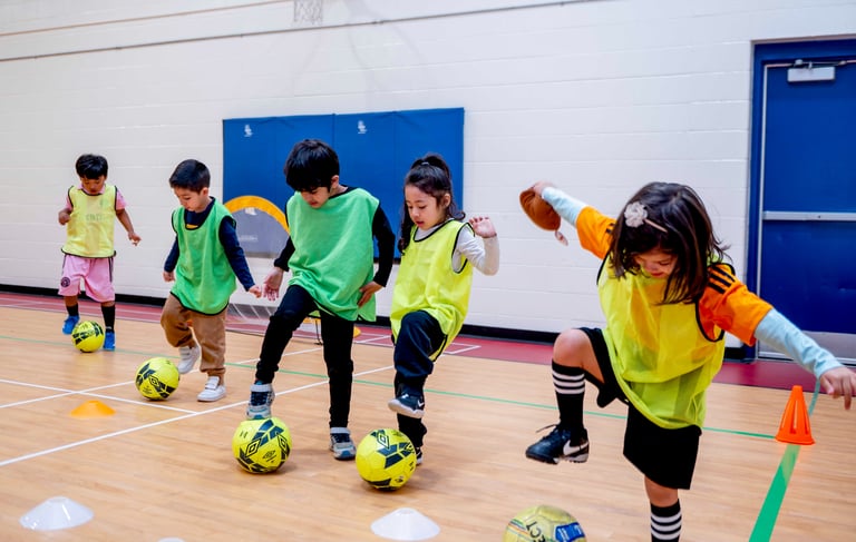 Soccer helps children improve coordination, balance, agility, speed, and endurance. Our sessions include dynamic warm-ups, movement activities, and age-appropriate strength exercises using body weight only.